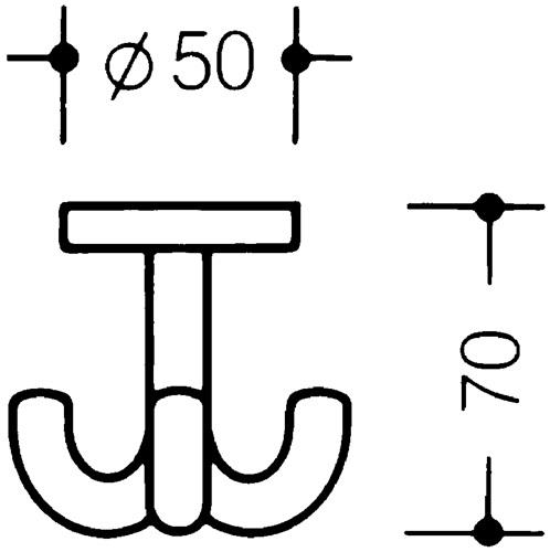 Dreifachhaken 477.90.050 dreifach A.50mm PA reinweiß 99 H.70mm D.50mm HEWI