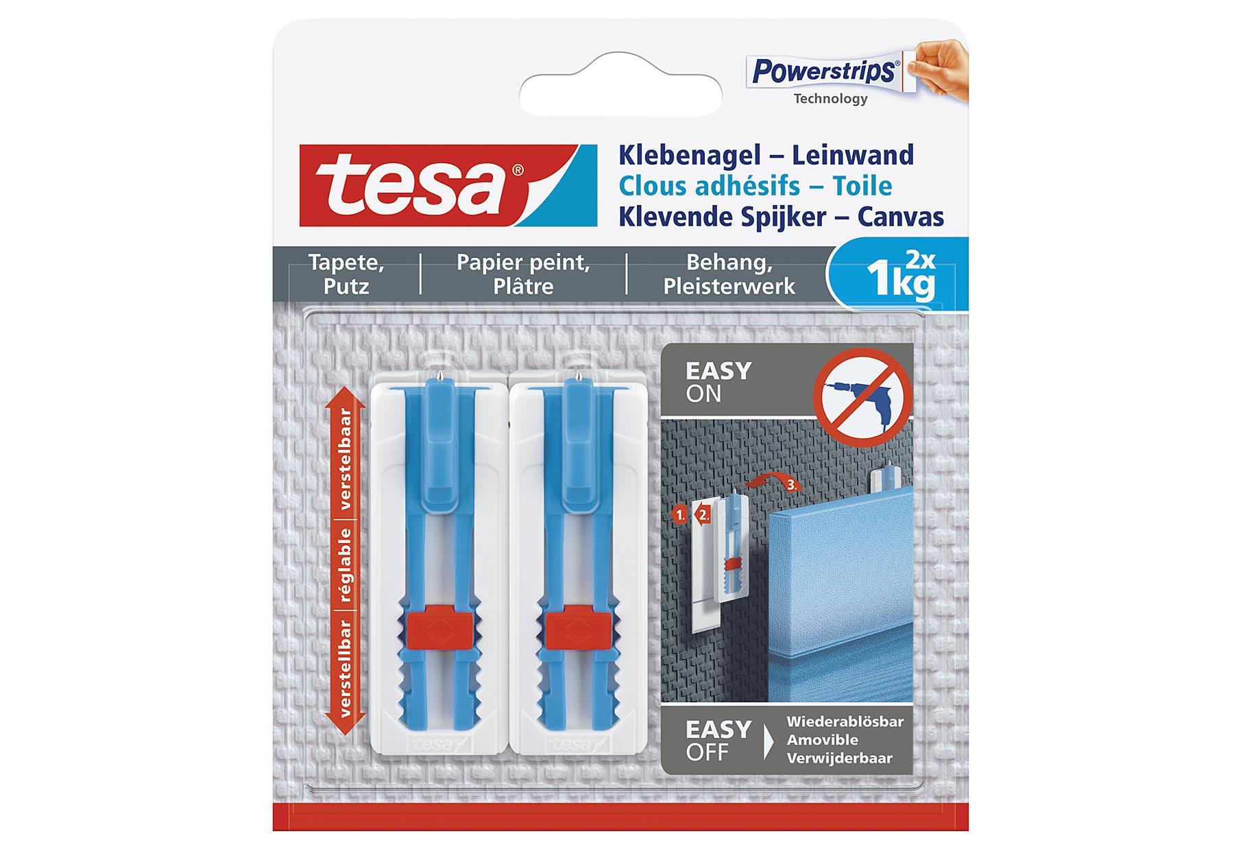 TESA Klebenagel Leinwand verstellbar Tapete & Putz max.1kg 2StückrnLieferumfang: 8 VPE