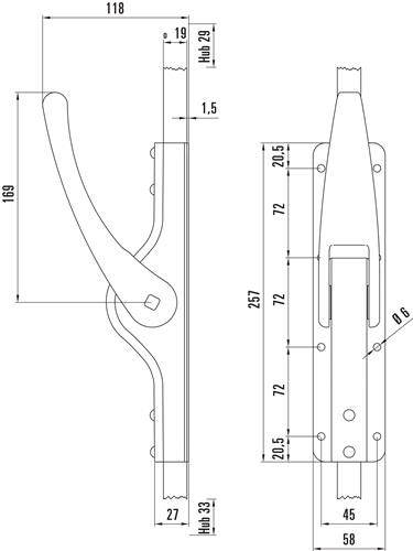 neutrales Design für alle baulichen Voraussetzungen · alle Kanten gerundet · für Vierkantstangen · Getriebekasten aus Stahl 1,5 mm tiefgezogen, galvanisch verzinkt · stabile Getriebeteile
